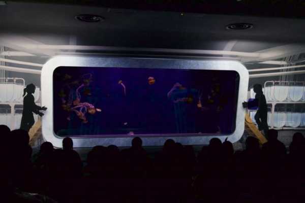 海月の宇宙(くらげのそら)は、クラゲ水槽の前で、クラゲの生態やえのすいのクラゲ飼育の歴史やこだわりを話題の3Dプロジェクションマッピングを通して紹介するイベント。