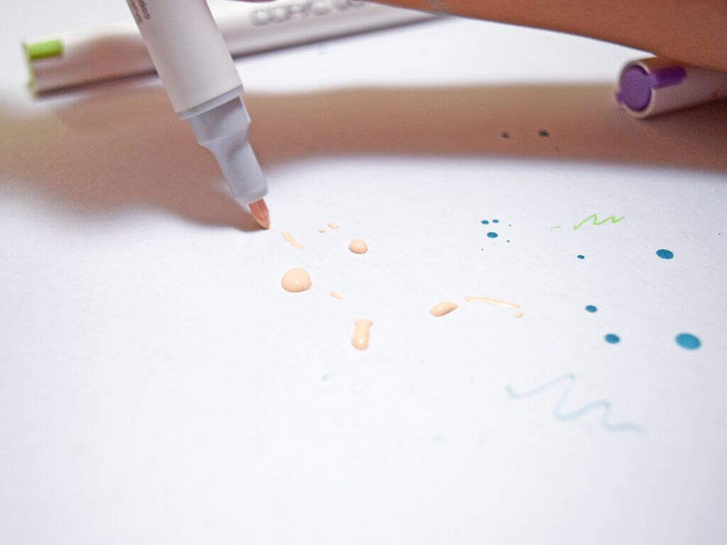 水性顔料マーカーは、時々かすれたり、思ったよりもインクが出すぎたりすることがあります。試し書きをすると、インクの量をうまく調整できますよ。