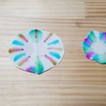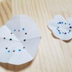 - ひだ折にしたろ紙を広げ、中心付近に好きな色の水性ペンで図のように点をつける。