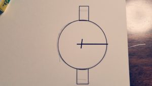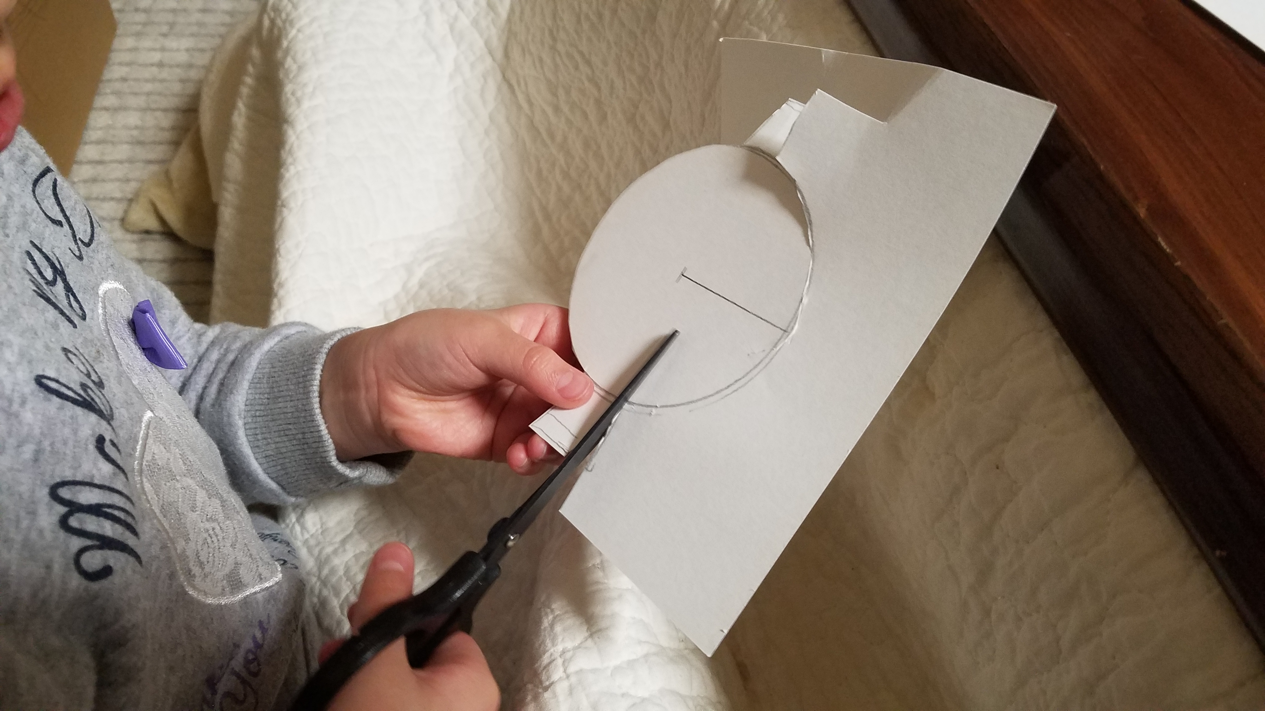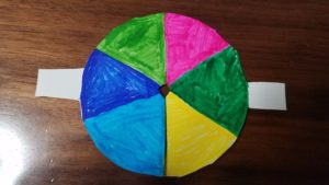 ⒌下の回転盤を画用紙に書き、色を塗って切り取る。
