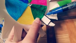 風車で書いた色を回して、どんな色の変化をするのか・書き方によって変化する面白さを研究課題や遊びとしてやってみましょう。